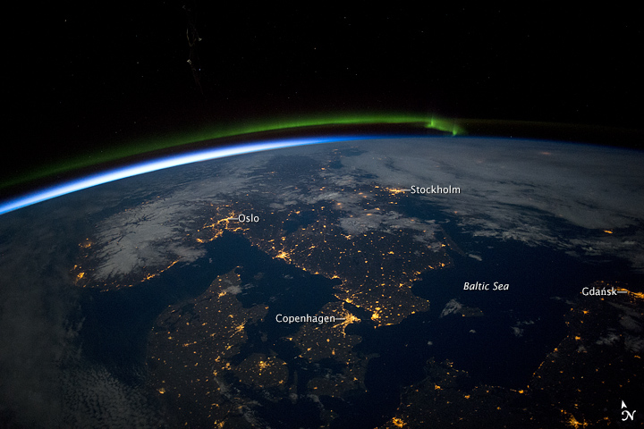 - Vista de escandinavia desde la estación espacial internacional (ISS) a unos 400 km de la superficie de la Tierra.